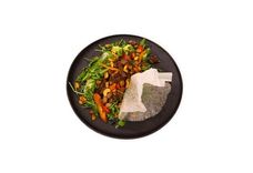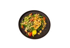 280 г • Салат айсберг, рукола, тофу, перец болгарский, огурец, оливки, черри, масло оливковое, горчица французская, соевый соус, мед, сок лайма.