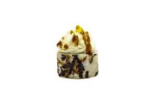 90 г • Шоколадный десерт с мягкой карамелью, цельным миндалём, грецким орехом и карамелизированным орехом пекан.
