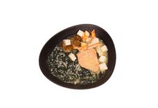 210 г • Бульон, креветка, лосось, окунь, сыр Тофу, грибы намеко, мисо паста, хондаши, вакамэ